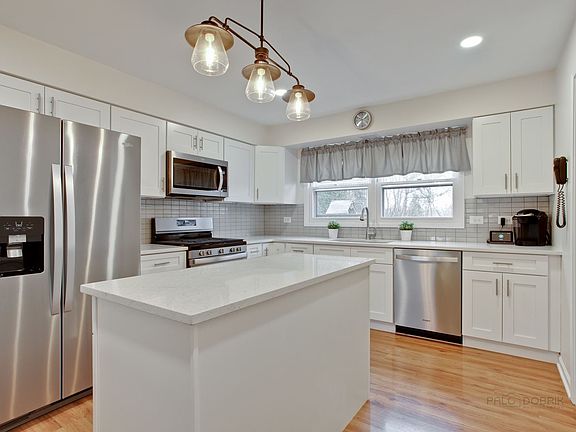 **Hand Sanitizer will be available as you walk in to view home**. Located in sought after Hoffman Estate community, this Dover model is rarely on the market! Home offers, 4 bedrooms 2.5 bath one of the largest lots in Winston Knolls nearly half acre w/ mature trees. Stunning Kitchen w/ White Shaker Kitchen cabinets, Quarts Counter Tops, Island, Brand New SS Appliances, eating bar, open to dining area. Mudroom has Pantry plenty of cabinet space. Formal Living Room / Family Room newly painted, Brand New Carpet. Master suite has an office area, his/her closets and a full bathroom. Newer carpet in the other 3 bedrooms. Upstairs bathroom with dual sinks and a tub. Laundry room located on first floor with sink. Finished basement has area used as a 5th Bedroom you can make an /Office Area/ Playroom along with plenty of room for entertaining. Workshop, lots of storage. Beautiful Brick paver patio out back w/ access from family room or back door by mudroom, overlooking the huge backyard with matured trees for privacy. Over-sized driveway. Minutes to I-90, downtown Palatine and Metra train station, Shopping, Restaurants. Award Winning Fremd District. Home comes w/ Home Warranty.