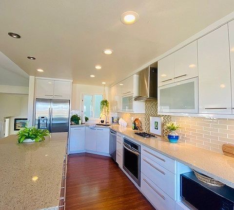 Custom bathsFinished flooringInterior patioGranite counterStainless appliancesWood flooring