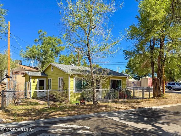 Charming and versatile, this 2 bedroom, 1 bathroom home offers 678 sq ft of comfortable living space just minutes from historic Prescott Courthouse Square. Whether you're looking for a primary residence, a weekend getaway, or a fantastic rental property, this home checks all the boxes. Inside, you'll find a bright and inviting layout with cozy living spaces and plenty of natural light. The fully fenced yard provides room to garden, relax, or entertain, with additional storage and workshop potential in the outbuilding. Enjoy the convenience of being close to downtown shopping, dining, and year-round events while still having your own private retreat. Improvements in recent years include a new roof, siding, insulation, and electrical replaced with a larger box installed. Schedule your showing today!