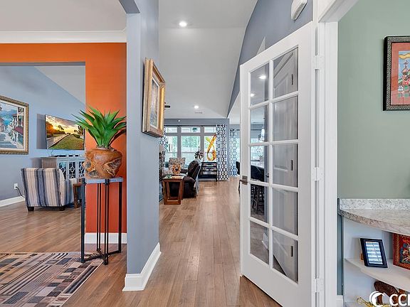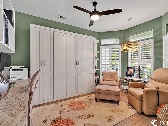 This stunning 4 bedroom 2 bath home is located in the desirable Market Common community of Myrtle Beach, South Carolina. Just minutes from the beach, this home is perfect for those who want to enjoy all that the area has to offer. The home has been recently upgraded with multiple upgrades, including custom closets, a built-in Murphy bed with hanging clothes racks and storage in the fourth bedroom, a custom built-in desk for all of your office needs, multiple designer light fixtures, pull-down stairs and fully floored attic space. In addition to the upgrades, the home also features a 3-car garage, gourmet kitchen, and gorgeous laminate floors. Make sure to ask your favorite agent for a full list of upgrades in this home. The backyard is spacious and perfect for entertaining guests, with a covered patio, screened-in porch and a fenced-in area for pets. The fact that this is the first home to be resold on Kingfisher Drive is a testament to the quality of the community. The homes in this area are well-maintained and the residents are friendly and welcoming. The Market Common community is a great place to call home. It is a vibrant and walkable community with a variety of shops, restaurants, and entertainment options. Belle Harbor residents can also enjoy a community pool, pickle ball court, and Publix grocery store nearby. If you are looking for a beautiful and upgraded home in a desirable location, then this is the perfect home for you. Schedule a showing today!