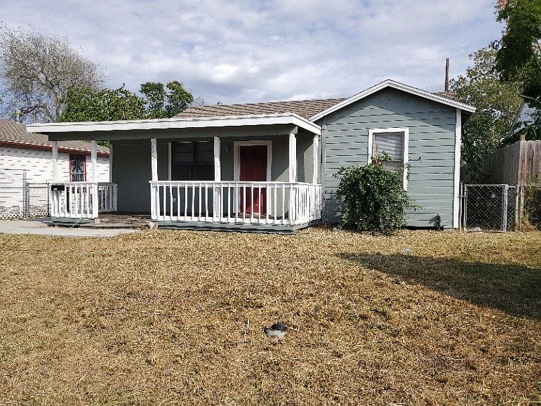 This move-in-ready 3-bedroom, 2-bath home blends cozy comfort with modern updates. Step inside to an open-concept living and dining area featuring neutral gray walls, large windows that fill the space with natural light, and easy-care tile flooring that flows into a bright kitchen with white cabinetry, granite-look counters, and stainless steel appliances. Both bedrooms feature ceiling fans and rich wood-tone floors, creating warm, welcoming retreats. Enjoy relaxing mornings or breezy evenings on the covered front porch overlooking a fully fenced yard—perfect for pets, gardening, or future expansion. Located in a growing pocket of Corpus Christi, just minutes from Downtown, the Port, and Interstate 37, this neighborhood offers quick access to dining, retail, and local employers. The area is seeing ongoing investment and revitalization, with new small-business developments and city improvement projects nearby—making this a smart opportunity for any buyer.