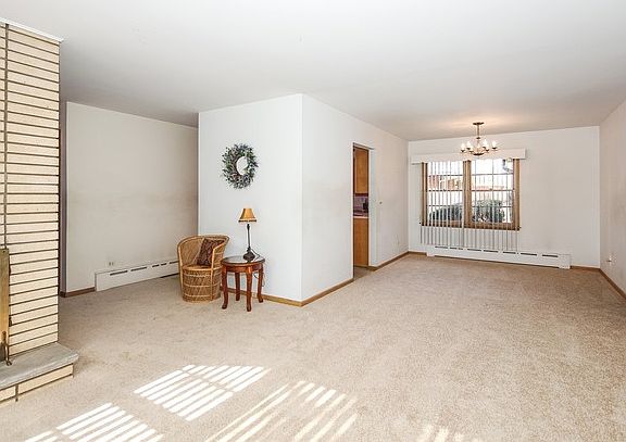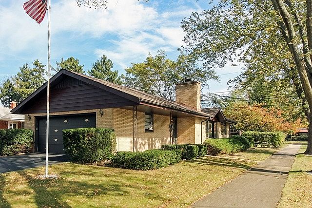 Here is an excellent opportunity for ONE-LEVEL LIVING in a SOLID BRICK RANCH, so well built! This is a one-owner home, loved and maintained for years by the same family. CHARMING COVERED FRONT PORCH greets you, large formal foyer with good closet space, living room open to dining area and complete with fireplace and large picture window. Cute kitchen could use some updates but clean, room for a small table. Two good sized bedrooms both w/double closets, hardwood floors. Nice bathroom, large linen closet. Did you see that nice 2 car ATTACHED garage? So convenient! Large basement, too partly finished but more could be done to make a nice FAMILY ROOM area! Mostly brick plus newer aluminum siding apx 2 yrs. Brand new carpet installed Oct. 2015. See this house!