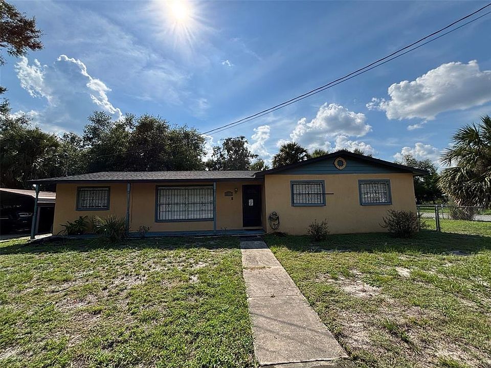 Welcome to this updated, block construction home with beautiful granite counter-tops, stainless-steel appliances and easy to maintain laminate flooring in the common areas. The new roof with architectural shingles was placed in August 2024! This home is positioned on a large corner lot with a fenced back yard, palm trees, oak trees and motion sensor exterior lights. You’ll appreciate the peaceful calm of the screened porch with designer window coverings, ample seating, space for your grill and a wall mounted TV! This home has three bedrooms and two bathrooms with an open design perfect for entertaining as well as a separate living area with vaulted ceilings for your personal bonus room. The inside laundry room has abundant space to help you stay organized. You can easily park multiple cars in the expanded driveway with the covered carport. There is even a utility shed for your convenience. This gem is conveniently located close to the newly developed retail center, The Shops of Lake Wire. It is minutes away from downtown Lakeland, hospitals, parks and Lakeside Village with movies, restaurants and shopping. Schedule your personal tour today!