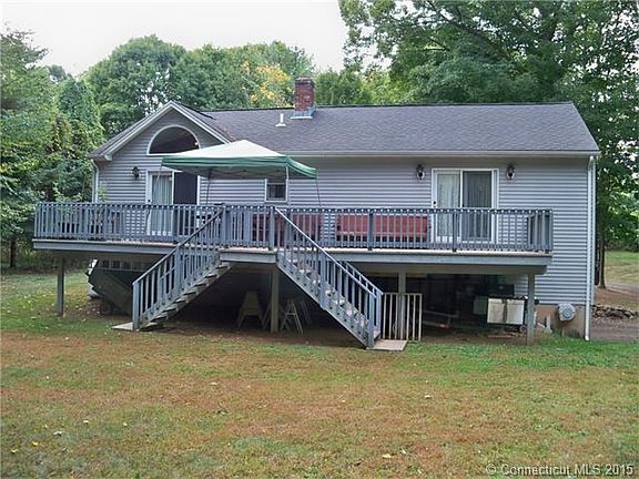 Custom built Raised Ranch set on private rear 1.87 acre lot. Large eat in kitchen with cathedral ceilings, hardwood floors, large bay window and newer appliances. Living Room with cathedral ceiling gas fireplace and French doors to the over-sized 14 x 40 deck leading to large level back yard with lots of privacy. Primary bedroom has cathedral ceilings, walk in closet, full bathroom and French doors to the deck. 2nd bedroom is oversized and hardwood floors; Full bath in hallway completes the first floor. The lower level Family Room is currenting being used as the 3rd bedroom w/ half bathroom and laundry. 2 car under garage and additional deep 2+ car detached garage, concrete basketball court and detached shed. Plenty of room to store snowmobiles, tractor, quads or cars. Large level yard for plenty of activities and sports. Central Air (1995 Furnace (1995 Roof (1995 Hot Water Heater (2022 Septic (1500 gallon -City Water. Cheshire is centrally located 2 hours from NYC and Boston. Easy commute to 84, 691 and 91. Come see what this property has to offer.