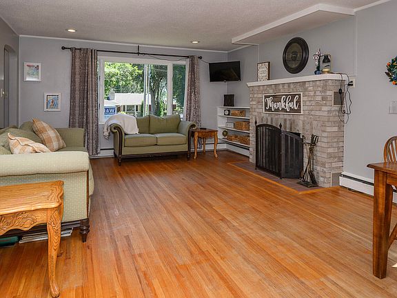 Adorable cottage style home with many wonderful updates throughout. The main floor consists of a large open living and dining room combination boasting the original hardwood floors, a huge picture window, recessed lighting, built in shelving, and a cozy wood burning fireplace. The bight and cheery kitchen has an abundance of white cabinetry and stainless-steel appliances. The primary bedroom is large and would accommodate a king size bed. The main bath has been fully renovated with, new flooring, all new modern fixtures, and a gorgeous custom tile tub surround. The 2nd main floor bedroom is also a very nice size.
