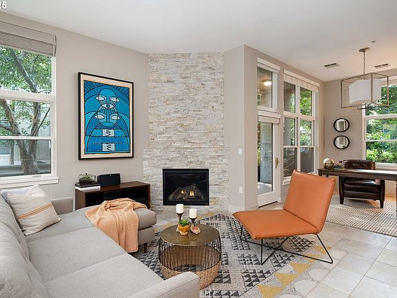 Live the urban lifestyle you’ve always wanted in the heart of Portland’s luxury Pearl District. This Riverstone condo offers it all with a quiet and serene open floor plan. Your own ground-level private courtyard entrance welcomes you home, leading to a covered private patio overlooking a lush, meticulously maintained courtyard—your own peaceful retreat in the city.Step inside to a tiled entry and soaring 10-foot ceilings that enhance the open and airy feel. At the heart of the home is a one-of-a-kind, chef’s dream kitchen—fully updated and designed to impress. Featuring a stainless steel Viking gas range and convection oven, quartz countertops, custom wood cabinetry, oversized island, tiled backsplash, Electrolux refrigerator, pantry, under-cabinet lighting, and an abundance of storage, this kitchen is a showstopper in both form and function.The dining area and massive windows bring in natural light and offer serene courtyard views. The living room includes a gas fireplace surrounded by stone, adding warmth and charm. A cozy family room opens directly to your private patio—perfect for entertaining or unwinding.The primary suite features a walk-in closet with custom built-ins and a tiled bathroom with a walk-in shower, glass doors, tiled vanity, and an additional closet. The second bedroom includes tiled floors, beautiful built-ins, and a custom closet. A second full bath boasts a tiled shower/tub combo, vanity, and extra storage.Just steps from your front door are multiple parks, top-rated restaurants, cafes, shops, and Portland’s Max line. This rare unit includes two non-tandem deeded parking spaces and a deeded storage unit. If you’re seeking convenience, luxury, and a peaceful sanctuary in the city, this is it.