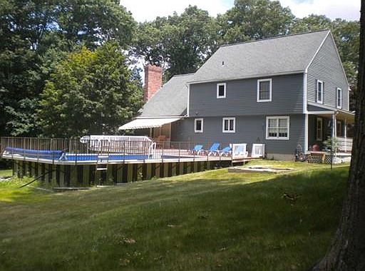 Is a subdivision not for you? This lovely Colonial is situated on a level 2 acre lot and set back from a quiet street but is just 10 minutes from I-395 (close to Sutton & Oxford). Enjoy the summer on the farmer's porch or the rear deck and large above-ground pool. Beautiful view of backyard and acres of conservation land...nothing else! This house has a great flow for entertaining...the spacious living room leads to large eat-in kitchen with island (recently updated w/ Quartz countertops and refaced white cabinets. Step down to the family room with wood fireplace and oversized slider to deck. 1st floor half bath w/ laundry. The second level offers a master suite and two additional bedrooms plus a huge 4th bedroom/play room/family room (electric heat; no closet) over the garage. Many closets and lots of storage! The beautifully finished basement makes a great playroom, rec. room (electric heat). Hardwood floors throughout first floor! Short sale; lender approval is required