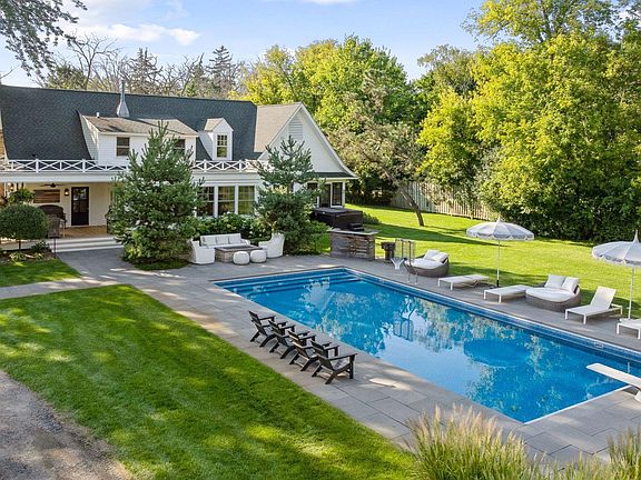 Welcome to this signature farmhouse in the heart of Orono. Crisp white interior featuring custom built-ins, shiplap walls and ceilings, hardwood floors, and designer finishes throughout. Main-level living includes an open-concept gourmet kitchen with a large center island and a great room with stone fireplace—all opening to the covered porch, pool, and patio. The primary suite offers a luxury bath, walk-in closet, and a private three-season porch overlooking the backyard. Additional main-floor spaces include a spacious dining room with fireplace, mudroom, and study/den. The upper level features three bedrooms one with loft/playroom, full bath, and a second laundry room. Professionally landscaped grounds showcase towering trees, perennial gardens, and open spaces to explore. A resort-style pool, hot tub and pool house/guest quarters provides exceptional entertaining space, complete with a kitchen, bedroom, and bath—ideal for hosting overnight guests. Multiple sheds offer plenty of room for toys and hobbies. This prime Orono location is just minutes from Downtown Wayzata, Lake Minnetonka, and both the Luce Line and Dakota Trails. Located in award-winning Orono Schools. Adjacent 3.6-acre lot also available—see MLS #6793396 (Lots & Land).