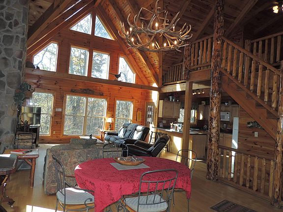 Hocking Hills log cabin has been enjoyed as a second home for family gatherings and as a vacation rental offered ''turn key''. Close to Wakeena Nature Preserve, Clear Creek Metro Park and Hocking Hills State Parks. Built in 2008 with Hostetler Log Cabin materials, this home incorporates timber posts cut and hewn from the property. Features include an upper loft that sleeps 3-4, half bath and overlooks the great room. The great room has a river rock stone hearth/WBFP, oak floors, open kitchen & dining with prow style wall of windows opening to wraparound deck. First floor owner's suite and den/4-season room complete the main floor. Mostly finished walkout LL includes rec area, media, game area, sleeping room for 4, full bath, w/d, opens to patio w/hot tub view of woods and rock wall.
