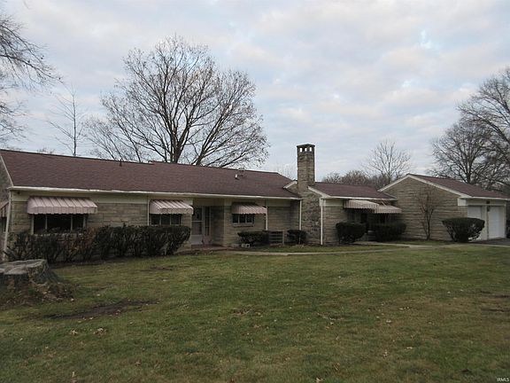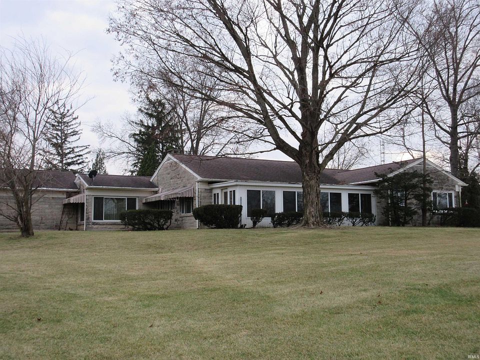 Beautiful setting situated on 3.60 acre site with winding driveway and view of the Wabash River and Greenway. 3 BR/2BA Limestone ranch with 2 car attached garage, rebuilt enclosed porch, large asphalt parking area with basketball goal and 16' x 26' Pole Barn with electirc & concrete floor for extra storage or workshop. Custom kitchen cabinets with wall of windows over kitchen sink, woodburning FP in cozy FR, bright & sunny home with lots of windows for scenic views, 90% GFA furnace with CA. Don't miss out to make this home your dream home!! This property may qualify for FHA, VA or USDA financing, but is at the discretion of the appraiser. Room sizes and sq. ft. to be verified by the buyers and/or buyer's agent. Property sold As Is condition.