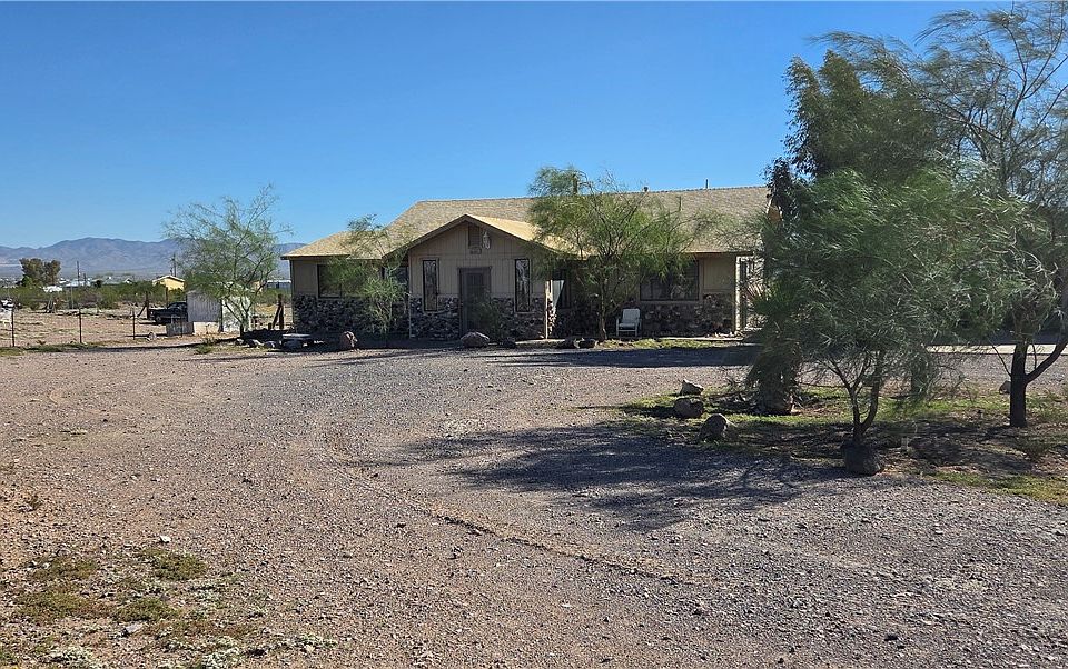 Cozy 3 bedroom, 2 bath Stick-Built home with detached garage and RV/Boat Parking. Nice curb appeal with a circle driveway, mature trees and landscaping in front yard. This home has been well-maintained and needs a little bit of TLC to bring it back to its full potential. Stick-built home offers 3 spacious bedrooms and 2 full bathrooms, perfect for comfortable family living or a peaceful retreat. Situated on a naturally landscaped lot with mature trees and greenery, the property features a detached garage with power and water, plus an additional RV/boat garage and Service pit for cars—ideal for a mechanic or hobby use. Enjoy convenient access with a circle driveway, providing plenty of parking space and easy in-and-out access. The home combines practicality with charm, offering a rare combination of functionality and curb appeal. Located on approximately 1.28 acres of beautifully landscaped land, this spacious stick-built home offers around 2,000 sq ft of comfortable living space. This is a rare find combining functionality, space, and charm—perfect for those seeking a peaceful setting with room to grow. All vehicles and container will be removed. Fire hydrant at street and fire station approximately a mile away. There is a chimney spot in the home and in the garage, if you want to add. Swamp cooler in the garage as well.
