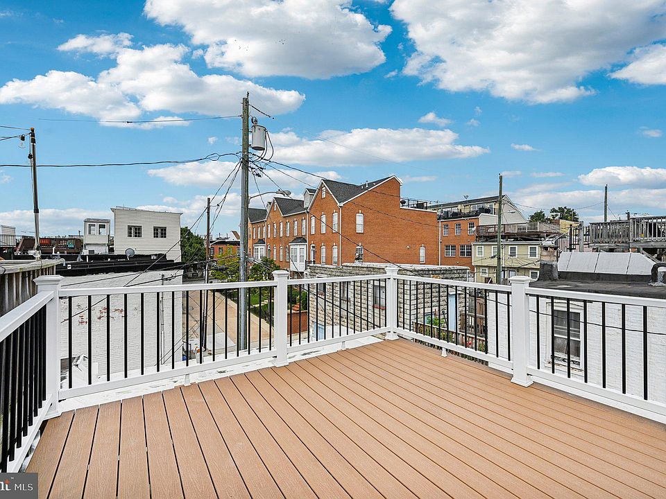 End-of-row brick homeFinished basementRooftop deckRecessed lightingHardwood floorsStainless steel appliancesLarge kitchen