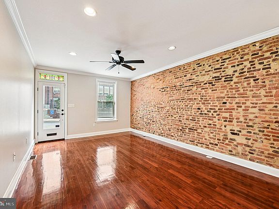 Welcome to 820 S Highland Ave! This end-of-row brick home in the heart of Canton blends charm and modern updates throughout. Inside, you’ll find 2 bedrooms, 2 full baths, plus a finished basement that works perfectly as an extra bedroom or bonus living space. The large kitchen is designed for both cooking and entertaining with a breakfast bar, stainless steel appliances, granite counters, wood cabinets, tile backsplash, wine fridge, and recessed lighting. Exposed brick, hardwood floors, and updated bathrooms add to the appeal, while the primary bedroom stands out with a coffered ceiling. Everyday living is made easy with laundry on the main level and a private parking pad in back, complete with a fully functional electric car charger. Enjoy the convenience of at-home charging and energy savings. Top it off with a rooftop deck offering city views. Prime Canton location! Close proximity to Canton Waterfront Park, Patterson Park, The Shops at Canton Crossing, Camden Yards, M&T Bank Stadium, and just minutes to BWI Airport.