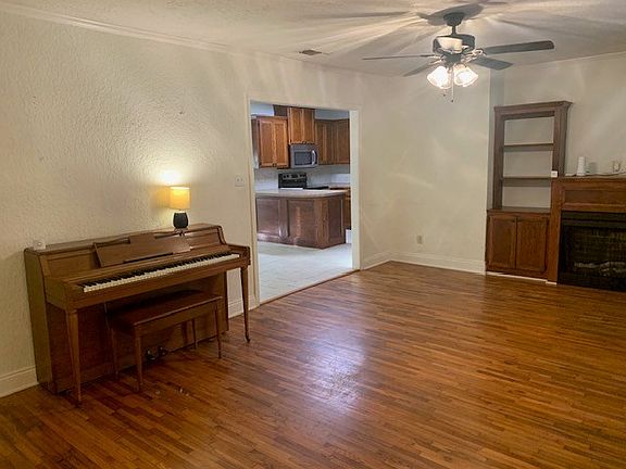 Magnificent oak treesExpansive yardBeautiful pecan treeLow-maintenance landscapingElegant built-in bookshelvesStunning wood floorsSpacious front porch