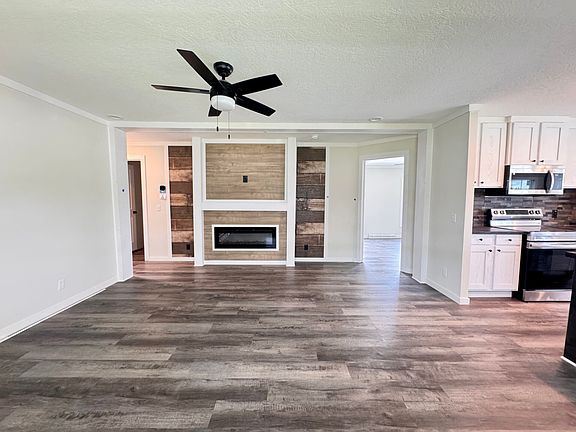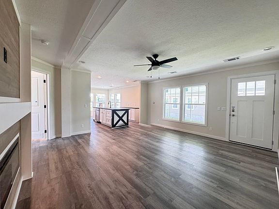 Welcome to the Coral Bay-a beautifully crafted new home designed for comfort and modern living. Enjoy outdoor relaxation on the charming 6' full front porch and take advantage of the carport with gutters and an 8x8 shed with a window for extra storage. This home includes irrigated landscaping including St. Augustine Grass! Inside, you'll find walk-in closets, a luxurious tiled master shower, and an electric fireplace that adds warmth and style to the spacious living area. The kitchen features a center island with a sink, over-range microwave, and a full stainless steel appliance package-all perfect for everyday living and entertaining. Additional highlights include central air and an Ecobee smart thermostat for efficient climate control. Thoughtfully designed with both comfort and functionality in mind, Coral Bay is the perfect place to call home.