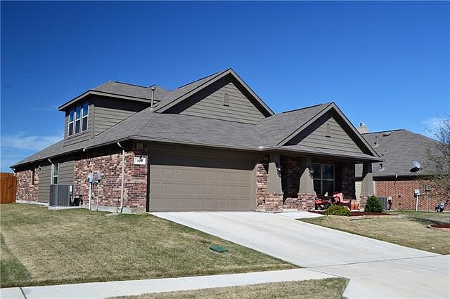 Nice curb appeal. Enjoy relaxing covered front porch. Artistic Glass front door. Extra width entrance; tastefully decorated w large ceramic tiles extending to living rm. 4 bedrooms; split Master in rear.Living Rm opens to Kitchen.Granite Breakfast Bar & Counter tops, SS Appliances, natural light flows between backsplash & granite tops. White stone fireplace & mantle is focal point in living room. Blinds on windows.Bonus Room up + half bath.