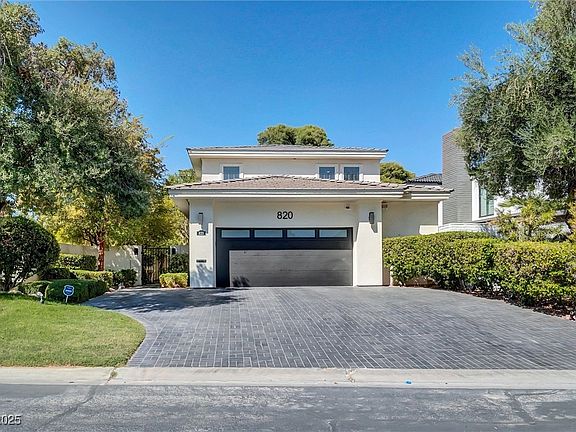 Don't miss this gorgeous custom home overlooking the fairway in the historic Las Vegas Country Club! Designer features at every turn make this a unique masterpiece. Custom cabinetry throughout, chef's kitchen with dual gas stoves & oversized pantry, artisan light fixtures, expansive master suite with jetted soaking tub & separate shower, generous master bedroom with windows facing the Strip and golf course. Downstairs bedroom has a refurbished ensuite with step-in shower. All upstairs bedrooms have an ensuite. New plantation shudders throughout, dual french doors lead to lush terrace overlooking the golf course. Oversized garage with Tesla charging station, separate area suitable for golf cart parking or a workshop. Membership to the Las Vegas Country Club and Golf Club is not included but available. Other features include newer AC units, Tankless water heater (1 year) and freshly painted interior! Located minutes from the Strip and guard gated! Spa, sauna and smart locks do not stay.