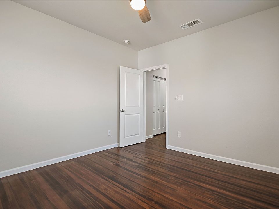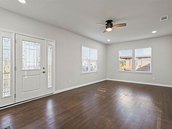 Modern vanitySleek electric fireplaceGleaming hardwood floorsNice patioLarge windowsStunning granite countertopsPlenty of storage space