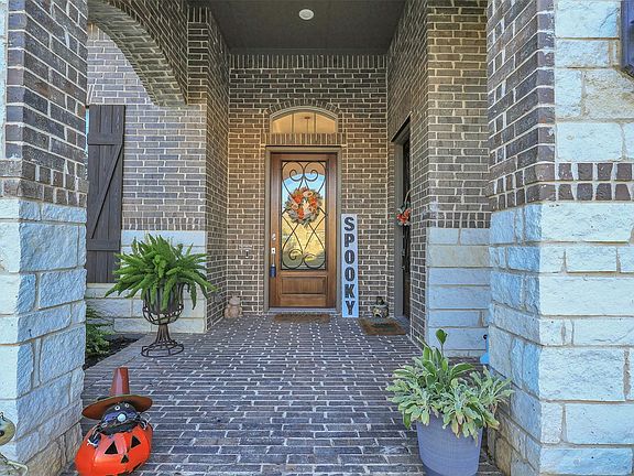 This stunning 4-bedroom, 3 full and 2 half-bathroom home offers the perfect blend of luxury, functionality, and privacy. Designed with a unique Next Gen floor plan, it features a private guest suite with its own entrance, living room, kitchenette, bedroom, and full bath—ideal for extended family or guests. The spacious layout includes four living areas, a dedicated home office, and a 4-car garage with a commercial-grade 220V outlet for EV charging and extra storage. The open-concept main living area is enhanced by custom built-ins, floating shelves, and a cozy fireplace, all complemented by rich engineered hardwood flooring. The secluded owner’s suite boasts bowed windows, a large en-suite bathroom, and a walk-in closet with custom cabinetry. Upstairs, enjoy a full entertainment space with a game room, wet bar, and theater room—perfect for hosting family and friends. Step outside to your own private retreat featuring a large pool and spa, covered patio, full outdoor kitchen with island, and two dining areas, all surrounded by mature trees. The professionally graded lot includes a French drain system and storage building for added convenience. Tucked away at the back of the development in the scenic Gean Estates, residents enjoy rolling topography, mature landscaping, and access to premium amenities including a community pool, cabana, putting green, trails, and a stocked fishing pond.