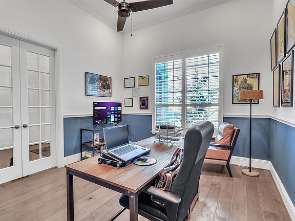 Cozy fireplacePrivate retreatDedicated home officeFrench drain systemRich engineered hardwood flooringStorage buildingCustom built-ins