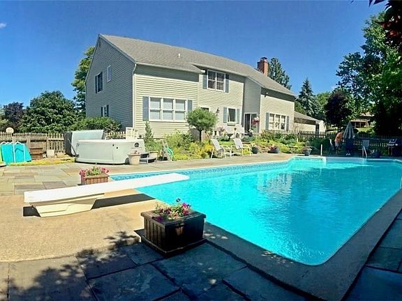 Offers Due at Noon 3-11-24. Top Notch Location in Manlius! This 4 Bedroom 2.5 Bathroom “2,968” Sq Ft Colonial is located on the End of a Quiet Cul-De-Sac within walking distance of all Schools! New Walkway leads to Entry Foyer & Large Living Room. LR Open to Formal Dining Room w/Wide Plank Hardwoods! Updated L-Shaped Maple Kitchen w/Granite Counter Tops + African Sepele Island + Wolf Cooktop + Large Eat-In Area + Slider to Back Yard Oasis! Vast Stone Patio surrounds a Gorgeous Salt Water IN-Ground Pool w/New Liner + Lighting + Fencing! Large Custom Wood Accented Family Room w/a Gorgeous Brick Hearth that boasts a Custom Mantel over a Gas Fireplace! Beautiful Woodwork in the Judges Paneled Office! Four Huge Bedrooms include a Master Bedroom w/On-Suite Bath w/Custom Newer Tiled Shower + Jetted Tub + Walk-In Closet! 2nd floor features 2nd Full Bath + Large Closets + 6 Panel Doors! Gorgeous Finished Game Room is Lined in Hardwoods + Custom Bar Area + lots of Potential for any Kind of Usage!