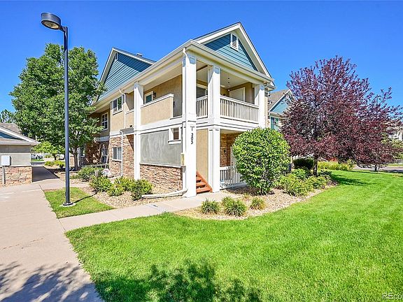 New appliances, new fixtures, and fresh paint throughout make this exquisite top-floor corner condominium in Denver’s desirable Tapestry community truly move-in ready. Offering 1,024 square feet of thoughtfully designed living space, this two-bedroom, two-bath home blends modern style with everyday comfort. The open floorplan and abundant natural light create an inviting atmosphere, with the living room flowing seamlessly into a chef’s kitchen featuring stainless steel appliances, sleek gray cabinetry, light countertops, and an elegant chandelier. The primary suite boasts vaulted ceilings, a walk-in closet, and a luxurious ensuite with a double vanity and shower/tub combination, while the second bedroom provides a peaceful retreat for family, guests, or a home office. Step outside to your private balcony overlooking the park—perfect for enjoying morning coffee or evening sunsets. Additional highlights include private garage parking and a prime Lowry location just steps from Montclair Rec Center, shops, restaurants, bike lanes, and miles of park trails. Residents also enjoy proximity to Lowry Dog Park, Common Ground Golf Course, and the Lowry Sports Complex, along with easy access to downtown Denver and major medical centers including Anschutz, the VA, and Denver Health.