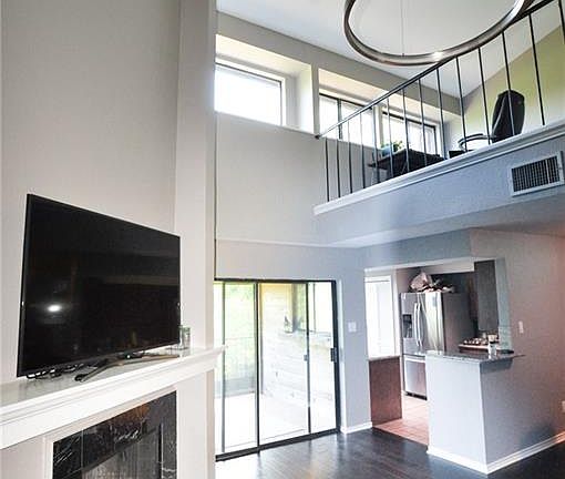 - |Time on Zillow65 days|1,98175Rarely available lofted condo with expansive canyon and greenbelt views! 2nd bedroom is open loft currently being used as office. Move-in ready unit with hardwood floors, granite countertops, completely updated all-slate master bathroom with open dual head rain shower and dual vanity sinks.Soaring ceilings, covered patio with canyon views perfect for entertaining or nature watching, 2 community pools, clubhouse. Minutes from the Domain, Arboretum, 360, Mopac.Listing Agent