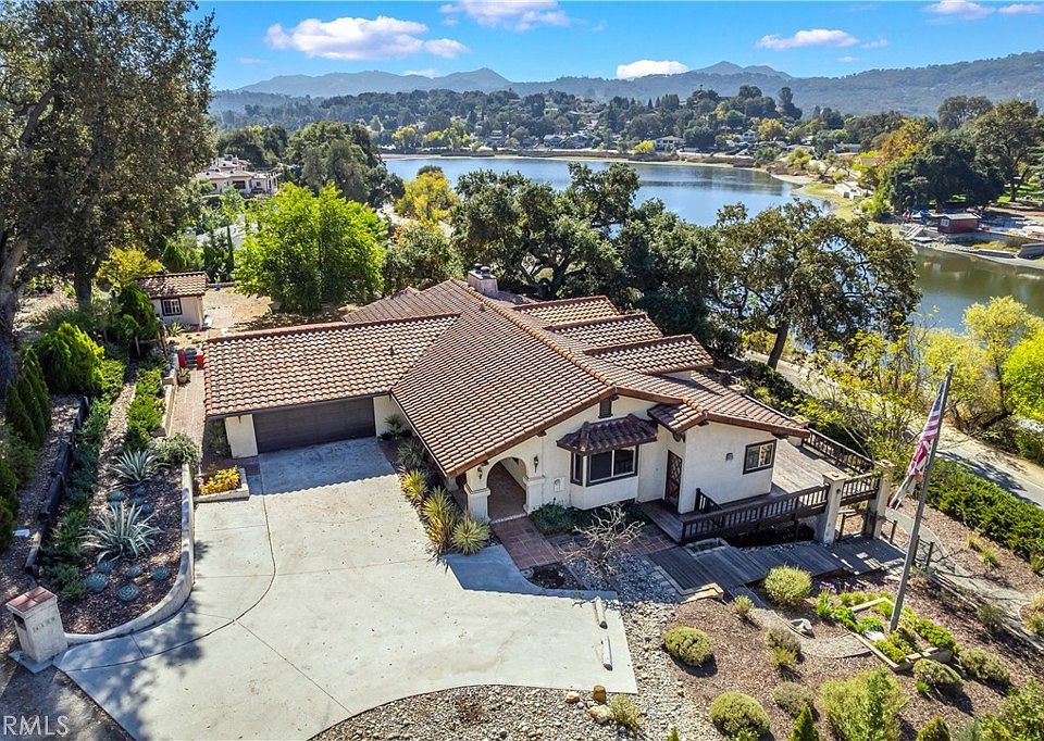Nestled on over half an acre next to Atascadero Lake, this Spanish Revival residence blends timeless architecture with a serene, park-like setting. From the moment you arrive, the handcrafted wood-carved front door and terracotta-tiled entry set the tone for the home’s rich character and classic charm.
