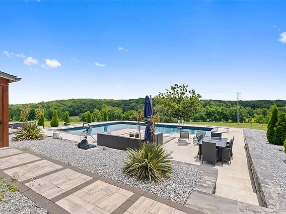 Discover your own private retreat on 30 acres of scenic countryside, complete w/ a peaceful live creek & stunning valley views. This beautiful 4-bed, 3-bath home offers 2,671 sq. ft. of thoughtfully designed living space, including 2 spacious living rooms. The gourmet kitchen features quartz countertops, ample cabinetry, & a 2-sided see-through fireplace that connects to the covered screened in back porch. Enjoy outdoor living year-round with a heated back porch overlooking a sparkling heated pool, complete w/ a diving board & tanning ledge - ideal for both relaxing & entertaining. The property also includes a 30' x 50' shop w/ a 10' lean-to, a heated & cooled room perfect for a gym or man cave, & a separate 1-bedroom, 1-bathroom apartment—ideal for guests, extended family, or rental income. Additional features include solar panels for energy efficiency and wide-open outdoor space with endless potential. This rare estate blends comfort, versatility, and natural beauty. Don’t miss your opportunity to call it home.