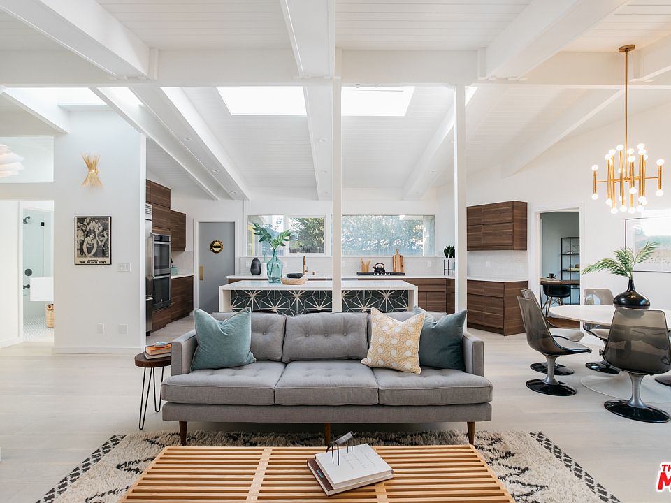 M I D C E N T U R Y M A S T E R P I E C E. Minutes from the beach. Design enthusiasts will love Blu and White Homes' meticulous renovation of this classic architectural, which has been infused with today's style and technology. The kitchen features sleek cabinets, a center island with atomic tile details, and panoramic windows overlooking a shaded outdoor area. The master suite with walk-in closet is warmed by a fireplace and opens to a private outdoor sitting area. Vintage touches, such as cement tiles, Schumacher wallpaper, and designer lighting abound, while hi-tech upgrades including central air and Ecobee thermostat, tankless water heater, Ring camera and smart locks appeal to today's savvy buyer. An additional 3 beds and 2 ba, a mudroom, walk-in pantry, and laundry with on-trend finishes complete the layout of this design-lover's home. The 6,501 sf lot has ample room for a pool to add a retro Palm Springs vibe.