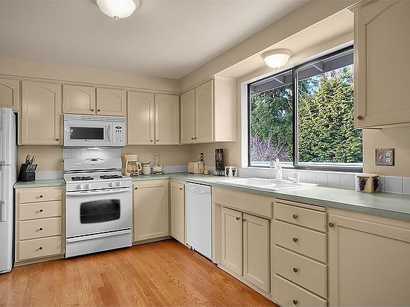Move to one of Edmond's most wonderful neighborhoods! Just a short walk to Seaview Park & Elementary. 4 bedroom, 2.5 bath, 3 bedrooms up 1 down. Hardwood floors, 2nd kitchen, large fenced yard, new gas furnace, newer interior doors, fridge, gas stove, microwave, dishwasher & H2o heater. Great area. Possible room for small RV on side of house.