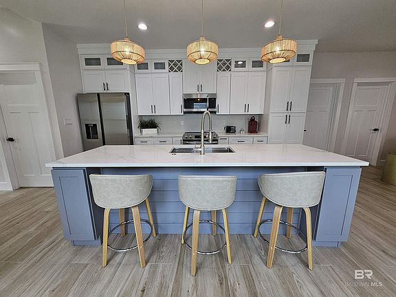 3bed/2bat 1554 SQFT Gold Fortified new construction is less than 7 miles from the white sandy beaches of Gulf Shores, AL. This house is priced to sell at $325,900 or if you prefer you can get it AIRBNB ready fully furnished for an extra $14,000 as shown in the pictures. This property features 9ft ceiling with 10ft tray ceiling in dinning area and master bedroom, impact rated windows, wood looking tile floors throughout the entire home, custom built walk-in closet, custom built walk-in shower with frameless tempered glass door, linen cabinet and double sink on the master bath. The kitchen comes with white shaker style cabinets with soft close hardware on doors and drawers, enclosed refrigerator, quartz countertops, tile backsplash, and stainless steel appliances. To Complete the kitchen the island mixes a light blue/grey color to bring that beach life feeling even closer. The hall bath has a tube with tile all around. The laundry has a service sink with quartz countertop and the garage fits two cars. This house was built by Unik Homes and is ideal for families moving down to the area or as investment property.DON'T MISS OUT!! Buyer to verify all information during due diligence.