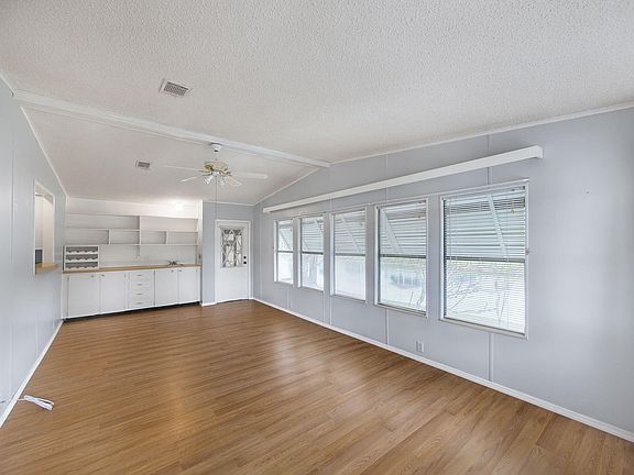 Welcome Home to this charming LAND OWNED 2/2 with a 2020 roof, large carport, large workshop, and 20 extra tie downs for peace of mind. Corner waterfront lot with an enclosed patio. Large master bedroom, open floor plan, and a giant bonus room with a view of the lake. This home does not disappoint. Enjoy an active resort lifestyle in Savanna Club which offers 18-hole golf course, theater w/live entertainment, tennis, volleyball, pickleball, shuffleboard, bocce, horseshoes, indoor basketball, 3 pools, classes, and clubs.