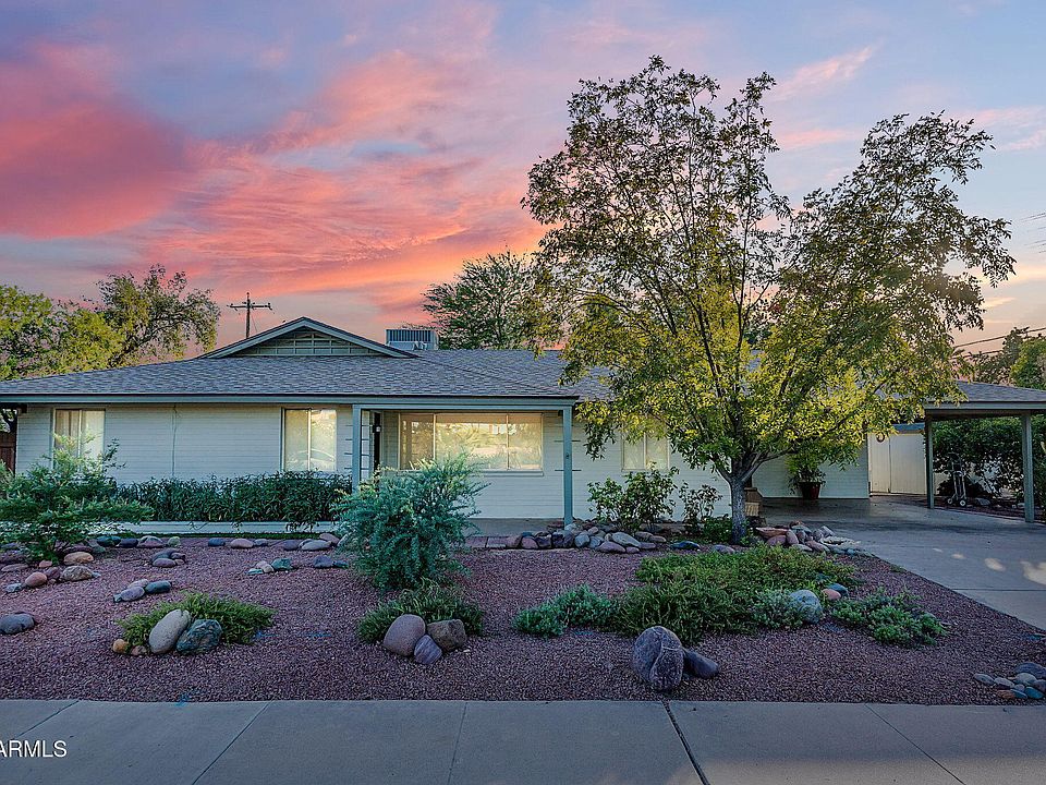 Welcome to sunny Scottsdale, Arizona! This 2,026 sqft home is set on a private 1/4+ acre lot in the heart of Scottsdale, AZ. This lot is arguably the nicest lot in the community (private, no through streets, next to a quiet walking path) The original owner has taken immaculate care of the home. New roof 2024, sewer re-pipe 2024, New electric panel 2024... and the list goes on! This spacious floor plan allows for easy entertaining with open formal living and dining, while the heart-of-the-home family room (with fireplace) opens perfectly to the kitchen. Just off the living room you will find the large indoor laundry room and a private den with door access to the side yard! Use the den as a home office, gym space or crafts area. On the other side of the home, you will find three bedrooms and two bathrooms. Outside, relax under the oversized covered patio. Pick your own fruit from the handful of mature citrus trees. Watch the Arizona sunset from your own slice of paradise. This beautiful home is nestled in the highly desirable South Scottsdale Corridor - minutes from Old Town, Fashion Square Mall, restaurants, MLB Spring Training Facilities, Chaparral Park, golf courses, hiking, and the 101 Freeway. Homes like this rarely come to the market. Schedule your showing today!