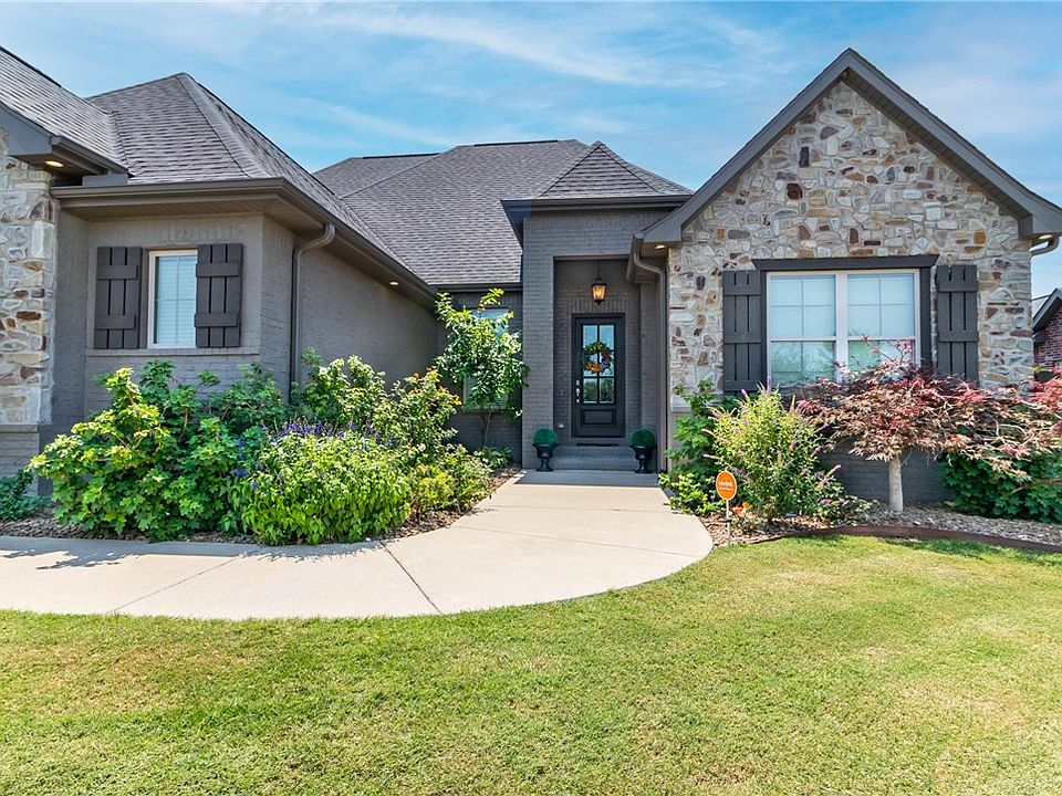 Experience refined living with all bedrooms on the first level in this 3,495 sq.ft., 4 bed, 4 bath, 3-car garage masterpiece. From the moment you step inside, hardwood and tile floors, rich shiplap accents, and granite counters set the tone for timeless elegance. The open floor plan flows effortlessly into a 15x19 heated/cooled sunroom(not included in advertised heated/cooled square footage), perfect for morning coffee or evening gatherings . The upstairs retreat boasts a massive bonus room with wet bar, full bath, and 2 spacious walk-out attic storage areas. Outdoors, a private sanctuary awaits—water feature, raised garden beds, and 360° flowerbeds designed for beauty, cutting, and pollinators, all illuminated by soft accent lighting. Tankless water heater, double sinks in the kitchen and recent upgrades that include a new roof (6/2025), dishwasher (2024), disposal (2024.) Crafted for those who appreciate space, style, and serenity, this home invites you to entertain, unwind, and live beautifully.