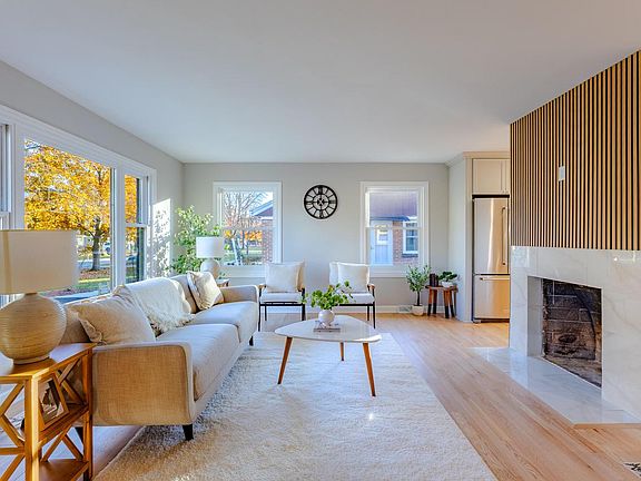 Experience refined living in this meticulously renovated 4-bedroom, 3-bath masterpiece, perfectly situated in one of the area's most coveted and tranquil neighborhoods. The home's open layout is anchored by a stunning living room with a designer fireplace with real hardwood floors throughout. The gourmet kitchen has been thoughtfully reimagined with custom cabinetry, premium quartz countertops, and stainless steel appliances. The first-floor primary suite offers a private retreat with a luxurious en suite bath. A finished lower level provides versatile space ideal for a media room, home gym, or kids play area. Additional highlights include a convenient first-floor laundry, remodeled secondary bathrooms, and a private backyard. Don't miss out on this one