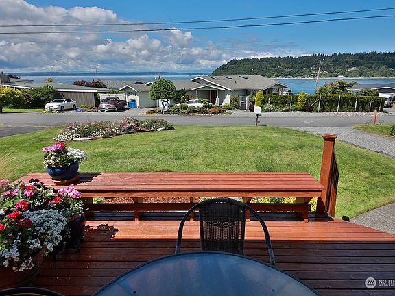 Enjoy panoramic views of the Olympic Mountains and the Puget Sound shipping lanes from this charming west facing home. Relax on your front porch as the sunset projects a collage of colors on the horizon, or entertain guests in the shade of the back yard with fruit trees and a newly refinished deck. Views are abundant throughout the home from the living room to the kitchen, the den to the primary bedroom. Move in ready with new wall to wall carpet and interior paint. Take advantage of the community amenities including the seaside swimming pool, boat launch and playground with sports courts. Not far from the Clinton ferry if you choose to use this property as a home away from home, or perhaps reap the rewards as a short term rental.