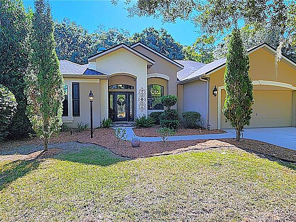 Experience Refined Living in Grand Park Village, Situated within the Esteemed Rainbow Springs Country Club Estates. This 2,119-Square-Foot CBS Home Features 3 Bdrms/2 Bthrms, 3-Car Garage, and an Expansive Screened-In Pool and Lanai w/Hot Tub. Situated on a .37-Acre Lot Offering Natural Privacy on Three Sides. Enjoy Professionally Designed Perennial Landscaping and Wooded Space at the Rear, Ensuring NO FUTURE DEVELOPMENT BEHIND YOUR HOME.