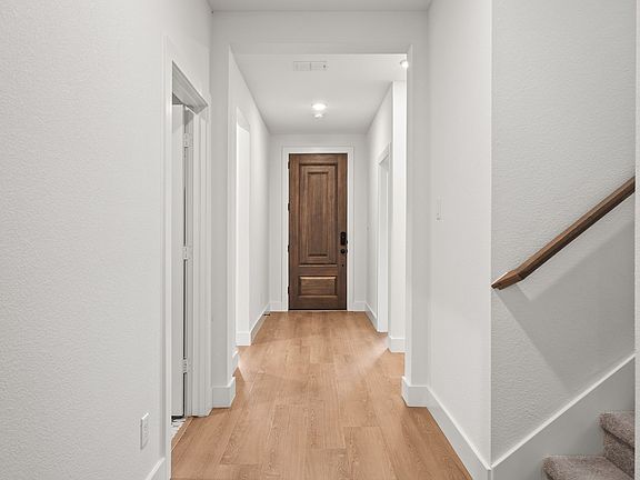 Situated on a premium greenbelt lot, this stunning Rayburn floor plan offers a beautifully designed layout with thoughtful upgrades throughout. The open-concept living area welcomes you with abundant natural light, creating a warm and inviting space ideal for both everyday living and entertaining. At the heart of the home, the chef-inspired kitchen impresses with quartz countertops, a large island with seating, stainless steel appliances, a designer backsplash, and shaker-style cabinetry featuring soft-close doors and drawers. Just off the kitchen, a beautiful formal dining room provides the perfect setting for hosting family meals, celebrations, and holiday gatherings. The private primary suite is tucked away on the main level and serves as a peaceful retreat. Enjoy a spa-like bathroom complete with a luxurious soaking tub, frameless glass shower, and a spacious walk-in closet. A secondary bedroom on the first floor adds valuable flexibility — ideal for guests, a home office, or multigenerational living.