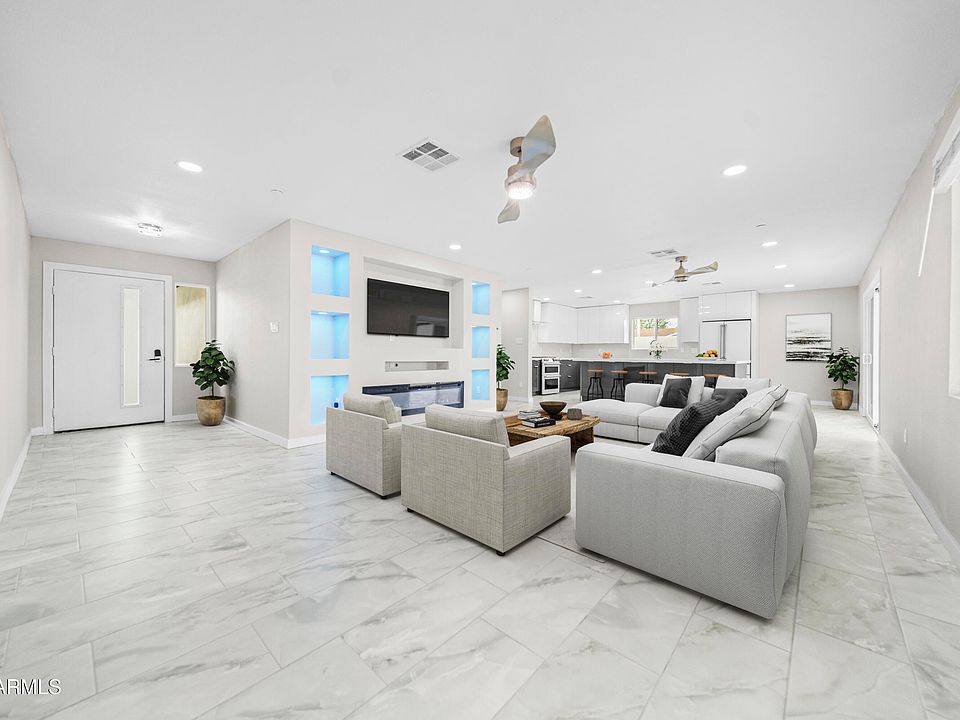 Modern tile flooringComfortable open floor planThoughtful single-level layoutFully updated homeAbundant natural lightHigh-quality finishesUpgraded lighting