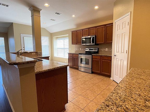 Bright, open, and move-in ready! This beautifully cared-for 3-bedroom, 2-bathroom home features updated colors, modern fixtures, and a spacious open layout you'll instantly love. The kitchen opens to the formal dining, living room, breakfast nook, or another flex space. The kitchen offers granite countertops, a stylish backsplash, stainless steel appliances, and tons of counter space perfect for cooking and entertaining. the big open living space makes this home feel airy, inviting, and comfortable. The split primary suite includes a spa-style bathroom for your own private retreat. Step outside to a fantastic backyard with plenty of patio space for BBQs, gatherings, or simply relaxing. The community also offers a pool and playground, giving you even more to enjoy. Come take a look today!