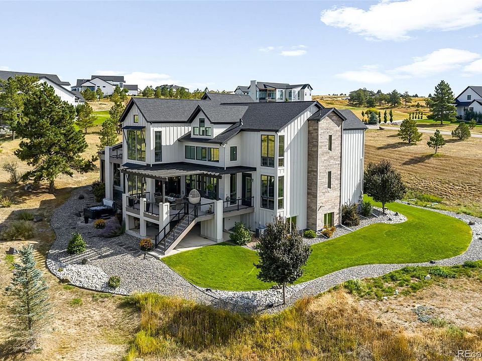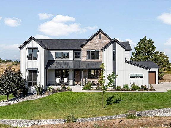 Welcome to 8203 Merryvale Trail – Set on a 1.51-acre, $150K professionally landscaped lot with 20+ new trees, two flagstone patios, and forever-protected open space to the South and West, this modern home offers the rare combination of panoramic mountain VIEWS and modern luxury intention. Inside, a wall of west-facing windows brings the outside in, showcasing sweeping views from EVERY LEVEL- even the basement. At the heart of the home, the chef’s kitchen dazzles with custom cabinetry, premium Brizo fixtures, pot filler, and double dishwashers/ovens. The prep kitchen adds a built-in desk/office, hidden walk-in pantry hid in the cabinets, and additional refrigeration drawers. Sliding glass doors open to a large covered deck with pergola and a gas grill connection.