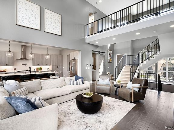 The main floor is designed for flexibility, featuring two bedrooms (one ensuite), a private office, and a transitional mudroom/bench space. Throughout the home, Restoration Hardware lighting, reclaimed wood barn doors, floating shelves, and a custom mantle with vintage corbels add elevated, mindful touches. Upstairs, the primary suite is a retreat with vaulted ceilings, a private patio, automated solar-charged blinds, a spa bath with floating cabinetry, under-cabinet lighting, and a steam shower with dual heads and wands, plus a spacious walk-in closet. The $200K FINISHED BASEMENT IS AN ENTERTAINERS DREAM: a full custom wet bar with JennAir beverage fridge and refrigeration drawers, game room, gym/flex bedroom with built-ins, reclaimed wood shelving, and MOUNTAIN VIEWS. The spa-inspired bath features a luxurious steam shower, while dual storage rooms with built-in shelving ensure everything has its place. Every element of this home was designed with intention—where luxury meets functionality and Colorado’s natural beauty takes center stage. Additional highlights: 70K in Custom Window Treatments, EV Charger 3 Car Garage with Epoxy Floors, New Roof 2022, Dual furnaces/AC, whole house humidifier and more!