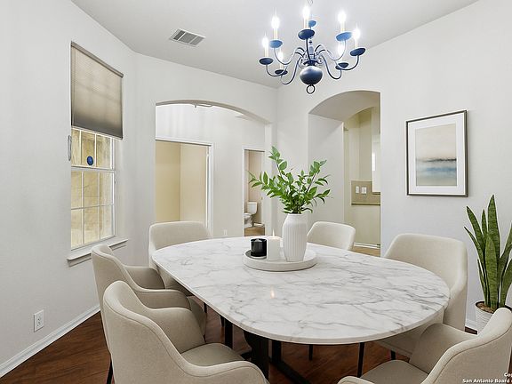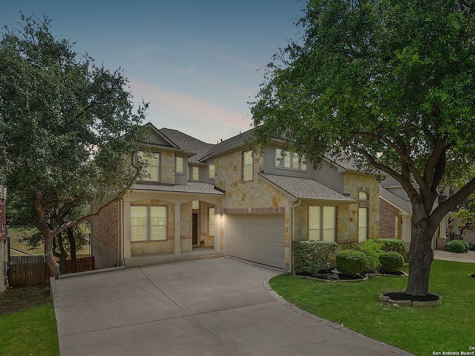Welcome to your new home in the highly sought-after Grandview community perfectly located near UTSA, La Cantera, The Rim, and Six Flags! This home has that warm, inviting feel the moment you walk in. The open layout is perfect for entertaining, featuring a cozy stone gas fireplace, a formal dining area, and a spacious kitchen where everyone naturally gathers for morning coffee or weeknight dinners. You'll love the recent updates - fresh paint inside and out, new carpet, and stylish laminate wood and tile flooring throughout the main areas, giving the home a modern, move-in-ready feel. Upstairs, there's a dedicated office for working from home and a media room ready for movie nights or game days. Step outside to your private back patio with no rear neighbors the perfect spot to unwind after a long day. The neighborhood offers so much to enjoy: a community pool, playground, park, basketball court, and clubhouse - all just a short walk away. This home has been well cared for and is move-in ready, offering comfort, convenience, and location all in one beautiful package. Come see why Grandview is one of the most desirable places to live in Northwest San Antonio!
