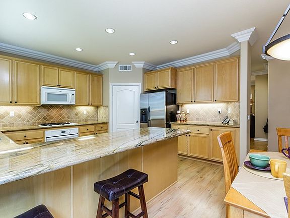 Immaculate Mediterranean style home located in a charming gated community in the heart of the valley. This beautiful, well-manicured two-story home offers 4 bedrooms, 2 bath, and 2,394 sq. ft. of living space. Upon entering, visitors are greeted with soaring, volume ceilings over the formal living room, located just past the foyer. The chefs kitchen boasts plenty of cabinetry, neutral granite counter tops, tumbled stone backsplash, a large walk-in pantry, & opens up to the family room w/fireplace for an open concept feel. Engineered wood-like flooring in a blonde tone, decorative crown molding, baseboards, recessed lighting, & lots of windows & natural light add to the richness & character of this living space. The main floor also offers a convenient powder room. Up the stairs you will find a spacious master suite with ample closet space, media niche & master bathroom with dual vanities and a separate bathtub & shower area. Three secondary bedrooms, another bathroom with dual vanities and combined tub/shower, a laundry closet, and extra linen cabinetry on the landing complete the second floor. The well-sized backyard is perfect for entertaining, & full of lush, mature landscape and a sprawling green lawn. The finished garage offers plenty of space for parking and additional storage. Located in a quiet residential neighborhood, yet freeway close and minutes to shopping, restaurants and all the amenities the valley has to offer.