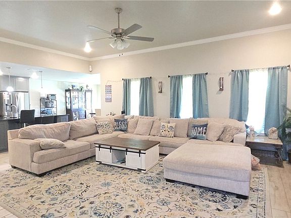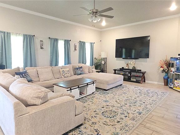 Split floor planBig cover back patioRecess ceilingsBeautiful kitchen cabinetsCrown moldingBar topDouble vanity