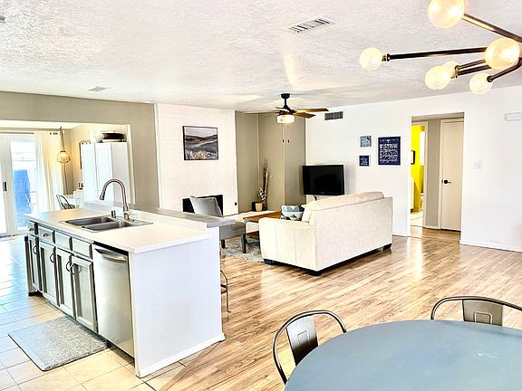 This home has it all! Charming curb appeal featuring brick and colonial style white columns. Open floor plan with a cozy fireplace for those entertainers. Lots of natural light coming through the abundant windows. Elegant flooring throughout. Modern updates and tasteful touches throughout including in the kitchen and bathrooms. Spacious Bedrooms. Covered patio just off the kitchen for a seamless extension of outdoor living space for family dinner or coffee in the morning. Nice sized private backyard with room for the kids or your toys and a storage shed. LOCATION, LOCATION, LOCATION, Easy access to Paseo Del Norte. This house has a space for everyone!