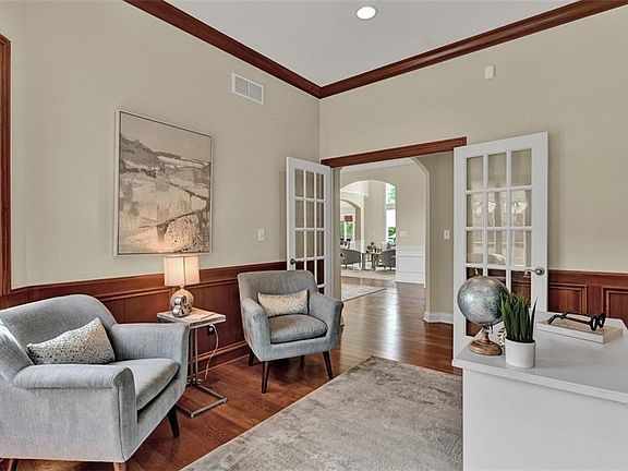 This awesome custom built home has an open floor plan that greets you at the front door. The home sits on 1.4 acres & has great views of the private back yard. Main floor master is huge & has a spacious bath with walk-in shower & oversized walk-in closet. Office with built-ins & French doors. 2-Story Great Rm with fireplace opens to Kitchen & Breakfast Nook. Upstairs has 4 large bedrooms that all have baths & walk-in closets. Basement is almost 3,000 SQFT with a Bedroom, 1.5 baths, Wet Bar, Bonus Rm, Family Rm & a Theatre Rm. Don't miss the large swim spa on the back deck (Trex decking) & fire pit in back yard. All new paint inside & out, plus new landscaping. Garage is set up for electric car. Security cameras. This home is move-in ready!