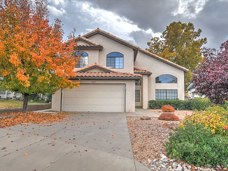 Tucked away on a cul-de-sac in the highly coveted La Cueva High School district, this beautiful 3-bedroom, 2.5-bath two-story home offers the perfect blend of comfort, style, and convenience in the desirable Norte Este Estates subdivision. Step inside and be greeted by gleaming with floors that flow throughout the light-filled main level. The spacious formal living room (17x15) seamlessly connects to a generous family room (22x13) featuring a cozy gas fireplace ideal for relaxing evenings or entertaining friends. The updated kitchen boasts a freestanding gas range, built-in microwave, breakfast bar, and a Pella sliding door that opens directly to your private backyard oasis.