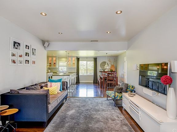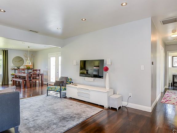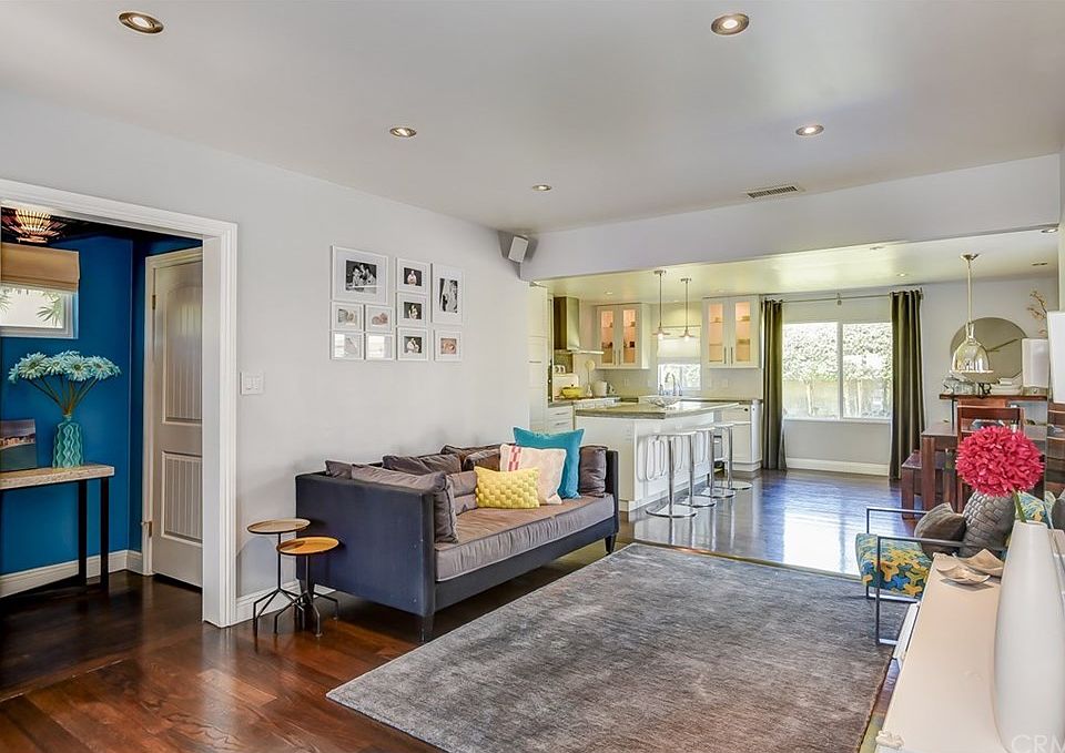 Beautiful modern home in the heart of Downey with European sleek finishes and attractive curb appeal in cul-de-sac. The home features hardwood floor throughout, modern gourmet kitchen with open floor plan, artisan concrete countertops, exquisite sparkly natural stone backsplash and plenty of storage. Pullout pantry and cabinets. A unique vintage stove with six burners and two ovens that makes cooking a breeze. Attached laundry room to the kitchen with added storage and concrete countertop. The master bedroom features a custom made industrial modern bay window with exotic wood and on suite. The bathrooms are tastefully designed with modern Spanish tiles covering floor to ceiling, modern vanities, rain showers, glass doors and special nonslip floors. Hard wired State-of-the art Definitive speakers throughout the living room, kitchen and outdoors making it perfect for entertaining. The house has been updated with LED recessed lighting and energy efficient double paned windows. New central AC & Heater, plumbing, electrical and water heater. The house has been completely insulated for added comfort. French doors open to spacious urban landscaping and well kept outdoors. Modern renovation is extended to the garage with insulated walls and ceiling, floor to ceiling shelving and updated electricity. Minutes walk to lively Downtown and upscale shops and restaurants at Downey Landing and the Promenade. Currently rented for one year. Great opportunity for investors.